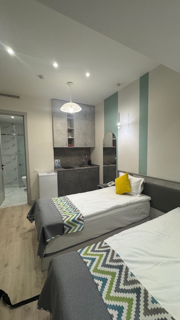 Because my childhood friend Sabrina spontaneously joined me for the Armenia adventure, we got to splurge on a hotel! We picked the Sunset Apart-hotel. It’s in a brand new building (like I’m not sure any other businesses are in the building yet), so it kinda looks wonky as you walk into the building, but once you are on the 16th floor it’s all good. The room is small but has everything you need. It’s very clean & high quality. The bathroom is lovely and there is a washing machine, which was such a treat! I think we did a total of 6 loads of laundry. The best part is the location. It’s highly walkable to any part of the center of Yerevan, which is the main things we wanted! I would definitely recommend this hotel if you are looking for a nice spot to base yourself at a very reasonable price.
